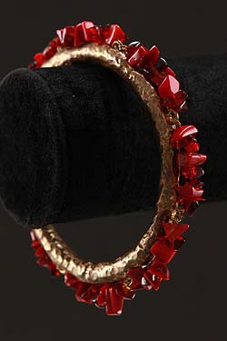 Get one size fits all bracelet that is light and red bright and its price is more than right. This fashion bracelet is 24K gold over sterling silver round bangle that has semi precious stones decor on top. This contemporary bracelet suits all ages and female types.