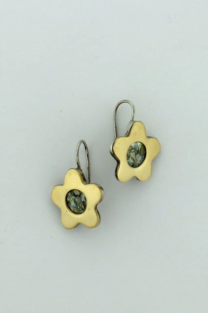 Two tone earrings with Roman Glass.