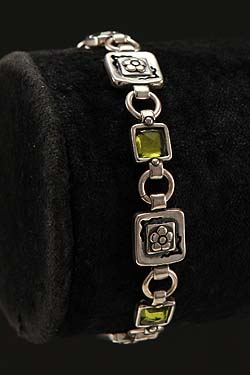 Hand made sterling silver bracelet with Apple Quartz and a toggle to a finish.
