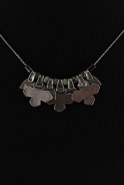 Hand made, sterling silver necklace with Turquoise, Green Agate and Onyx stones.
