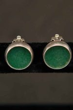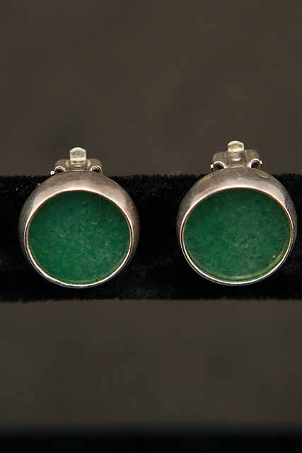 Green Aventurine button clip on earring surrounded by sterling silver frame. Light and delight.