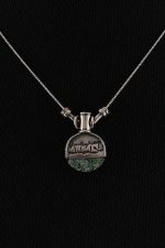 Chain: 17 in. long; Pendant:1.25 in. long, 0.75 in. wide.