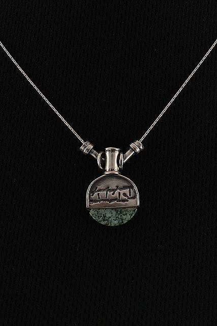 Hand made, sterling silver long necklace with a Turquoise stone.