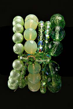 A beautiful of a mix green crystal beads of an elastic bracelet. one size fits day or night wear.