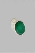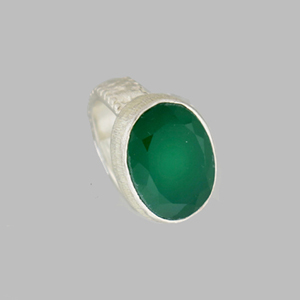 Spectacular oval Green Onyx ring. it has a facet surface stone cut. Its stone mounted in a shiny sterling silver, and sets in a contrast to its silver strips frame. The oval setting stone connected to a dotty, handcrafted textured band. The green stone seems like a dark lashes keeping its deep secrets and above all making it more desirable. It is stunning and beautiful at the same time and reasonably priced at our ZVU Jewelry site.