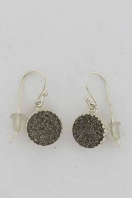 Small, round sterling silvery grey Druzy earrings on a sterling silver frame and wires.