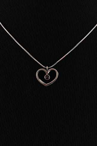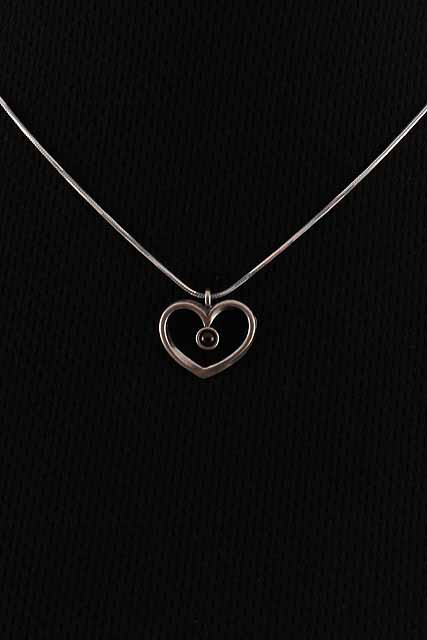 Hand made, sterling silver heart necklace with a Garnet stone.