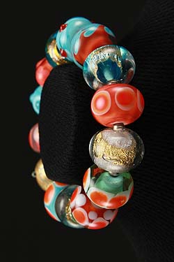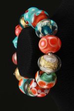 Fun vital mix color choices of a hand made glass beads with gold accents bracelet with an elastic band. Bracelet: One size fits all. One piece of a kind.