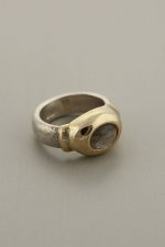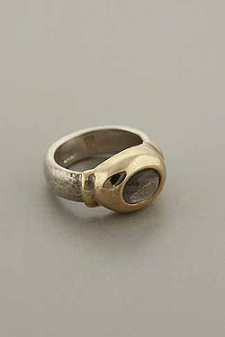 Hand made, two tone ring with a gold bay and Labradorite stone.
