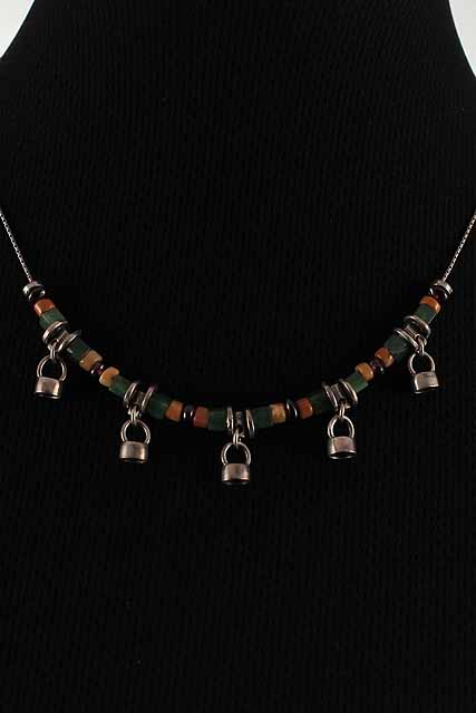 Be sure to show off the artistic touch of this colorful, beaded Agate stones. The sterling silver with little bells, earth colors and desirable stones. Luscious shades will look great and will complement your neck to a total great casual look.