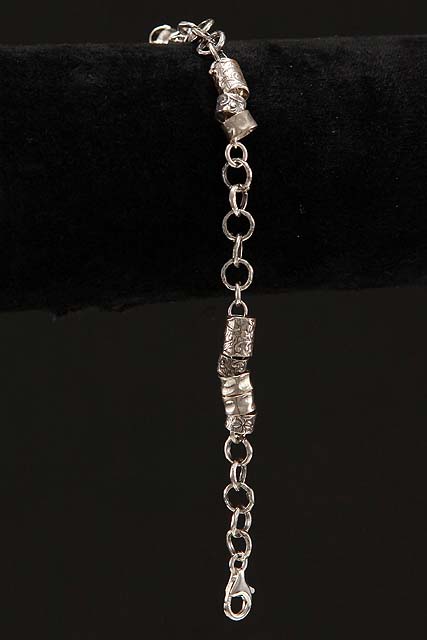 Striking sterling silver bracelet adds artistic appeal to any wrist. It is gorgeous and comfy. You can add more bracelets of different kind to it and mix and match more bracelets to it. It has the denty looks that is very sturdy.