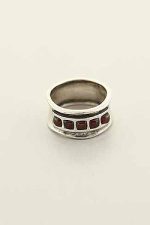 Hand made, sterling silver band with Garnets in a row.