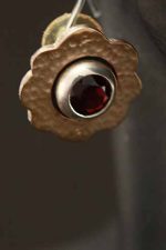 Flattering, two tone, posts and flowery earrings with Garnet stones. Trendy button earrings with moderate wavy edges. This sterling silver and gold earrings are any woman’s game. Easy to wear, fits so many styles and helps in covering up any ears styles are pierced.