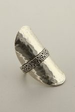 Life is a casual party, dress for it with this beautiful Israeli handcrafted long ring. This oval, hammered, sterling silver ring will flatter any finger and will dress it up for all occasions. The flowers band around, creating a beautiful add on to the ring and brings it up from the simplicity to the sophisticated casual look.