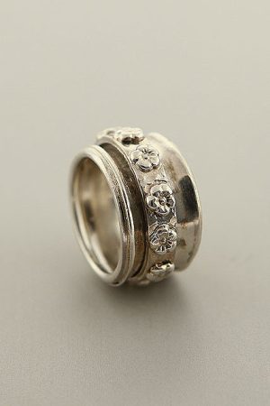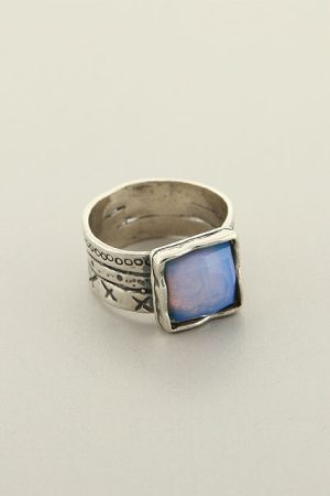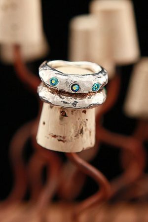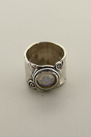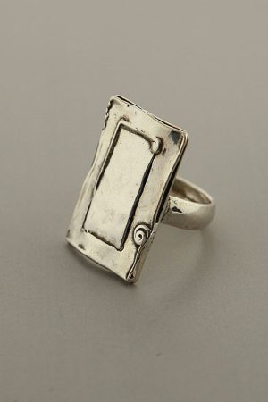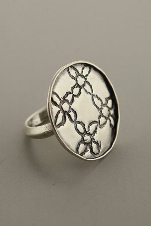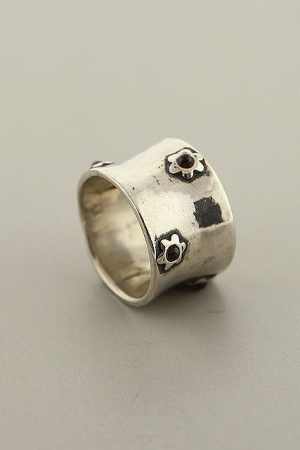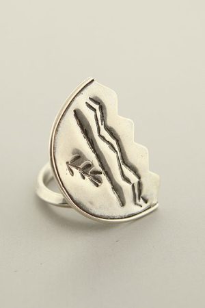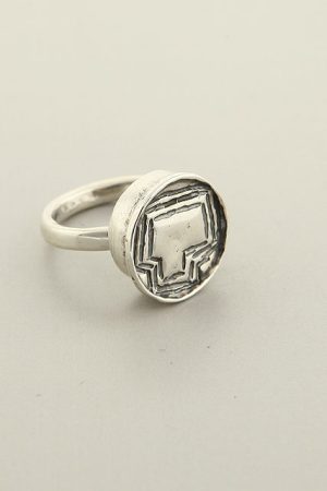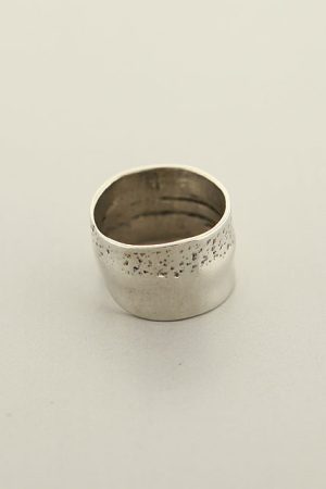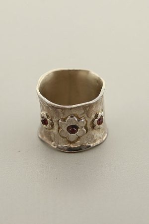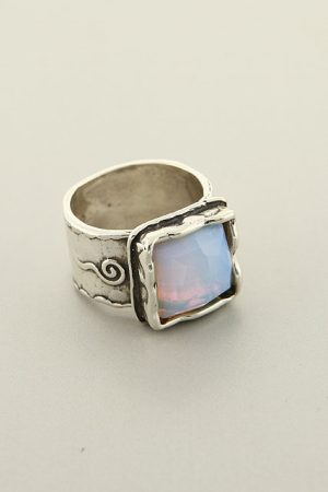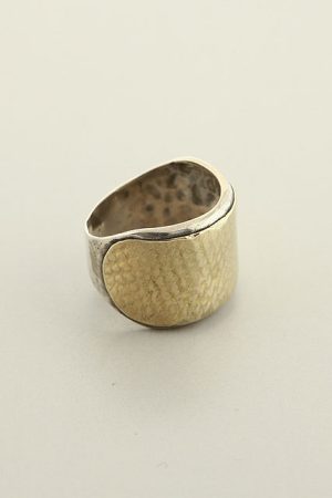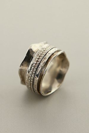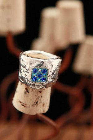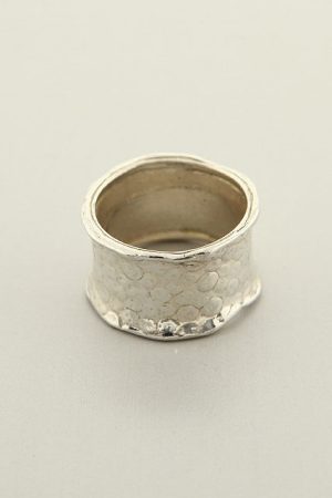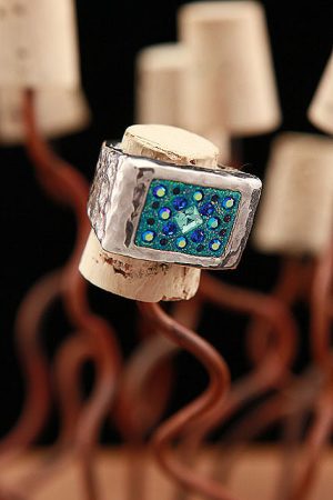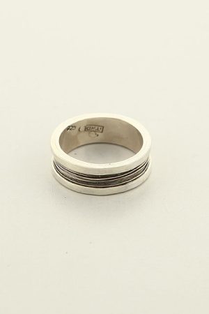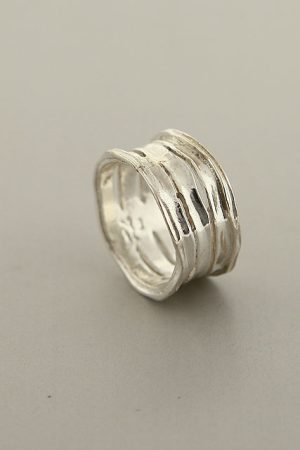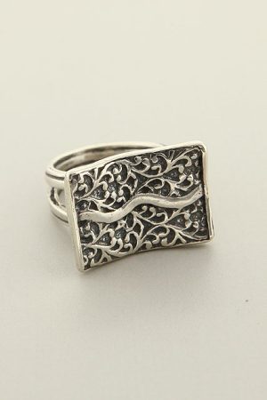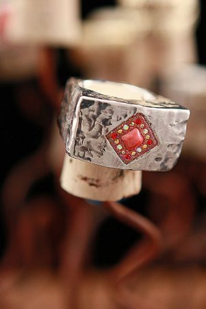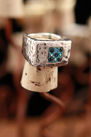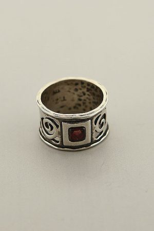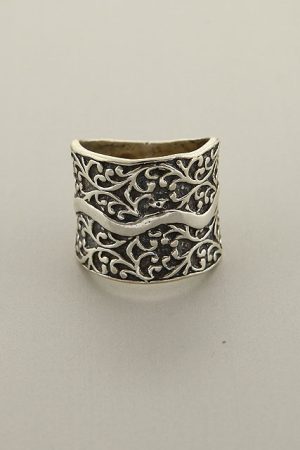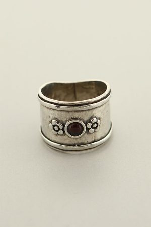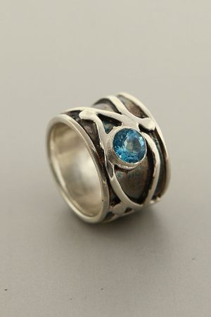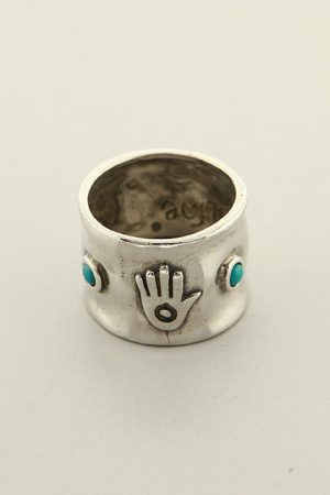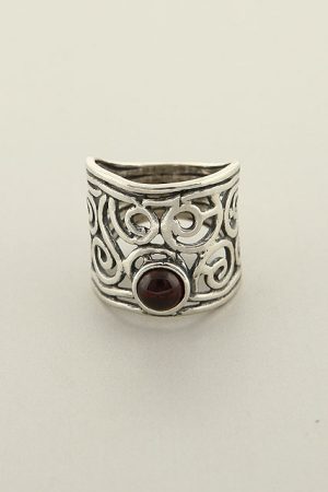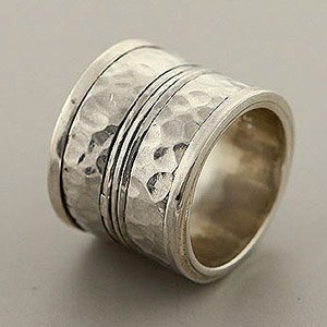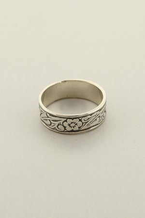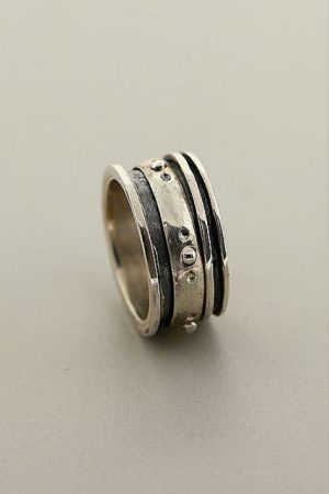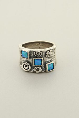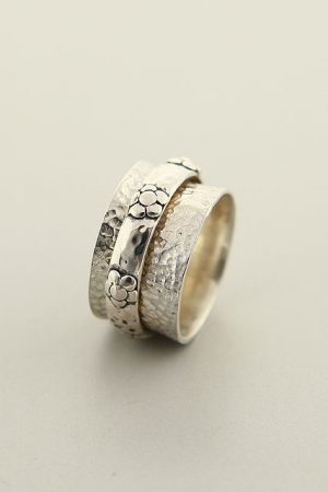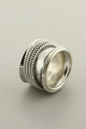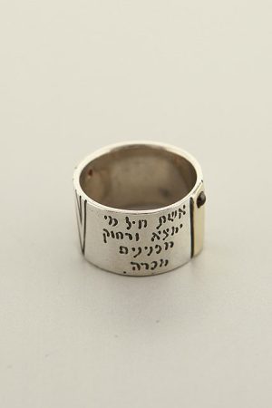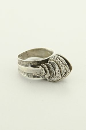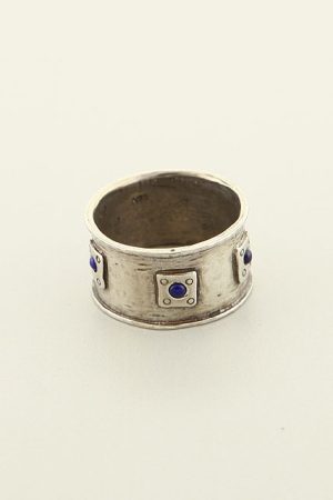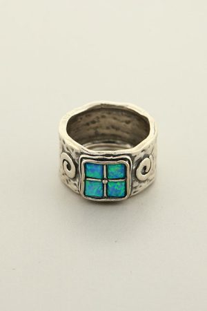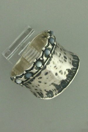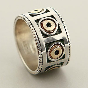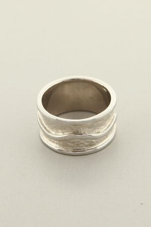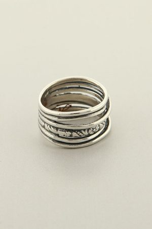 Artful to Artisanal – Embossed sterling silver band with sterling silver lines on a wide sterling silver band with a smooth artisan heart and a C.Z. sparkle. An original artwork by our designers into Israeli luxe accents that is authentic the Israeli way.
