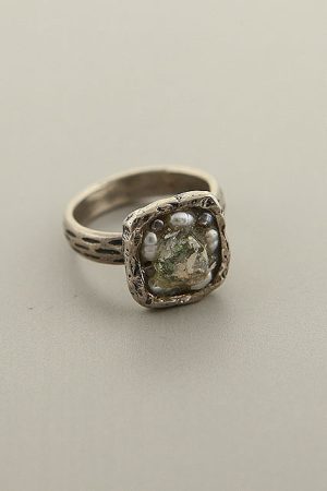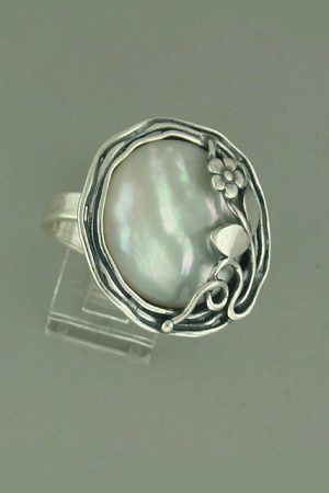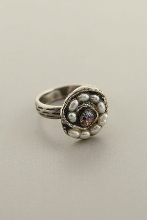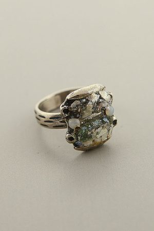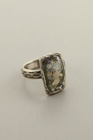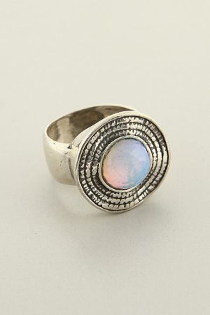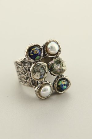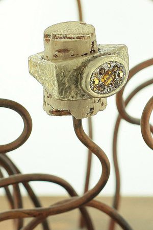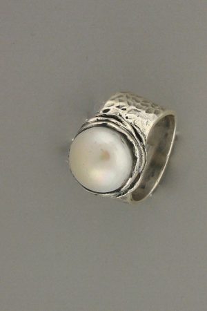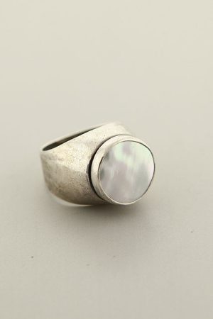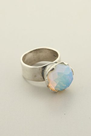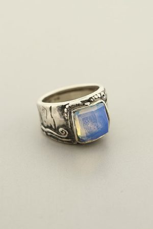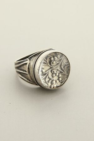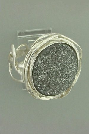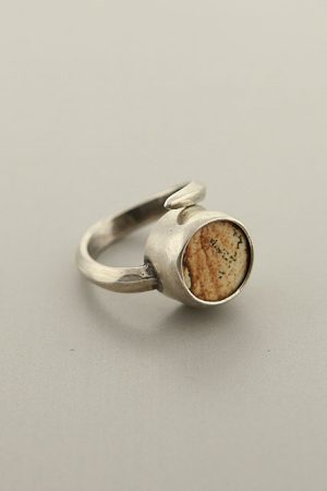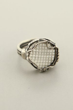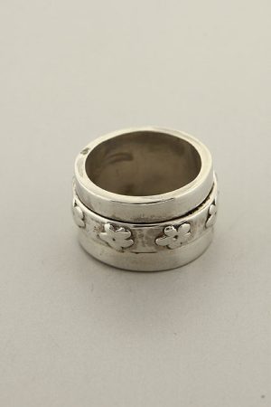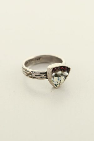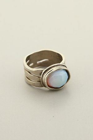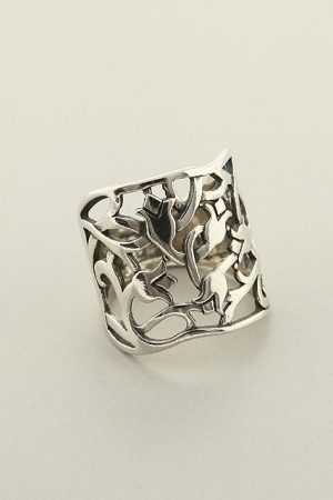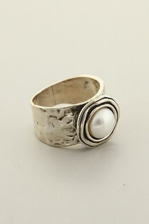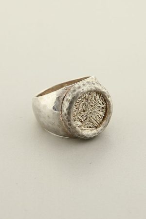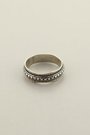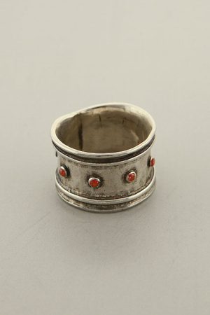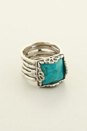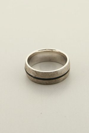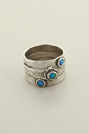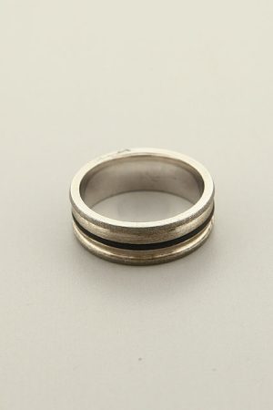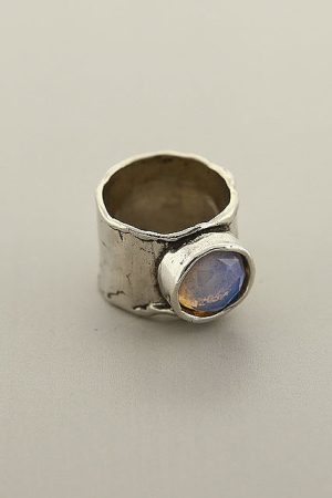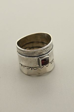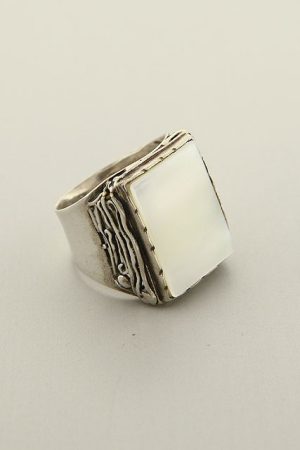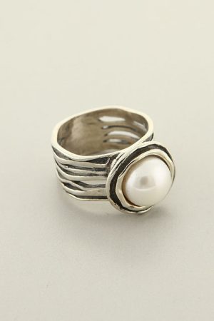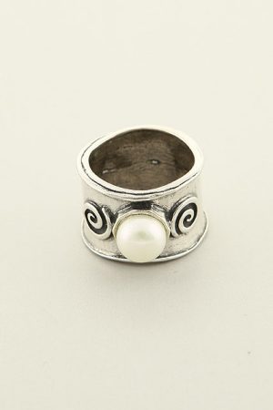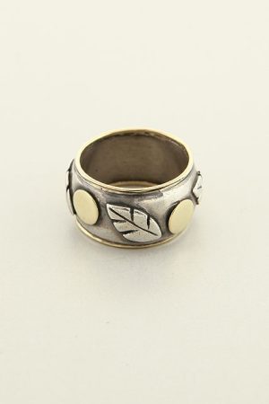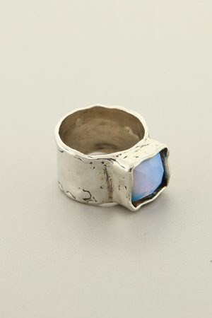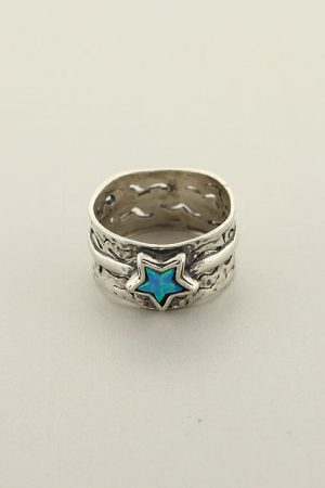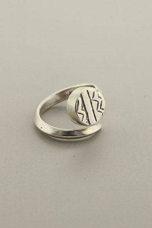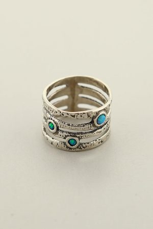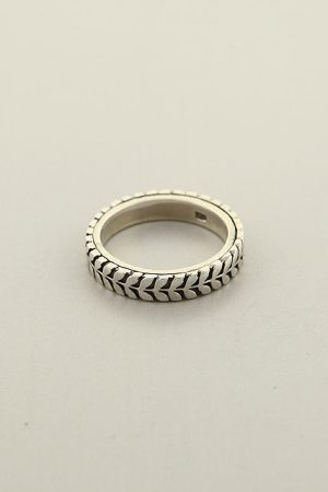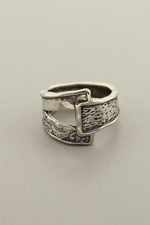 Artful to Artisanal – Embossed sterling silver band with sterling silver lines on a wide sterling silver band with a smooth artisan heart and a C.Z. sparkle. An original artwork by our designers into Israeli luxe accents that is authentic the Israeli way.