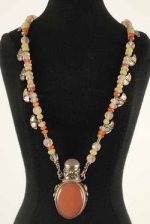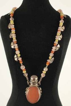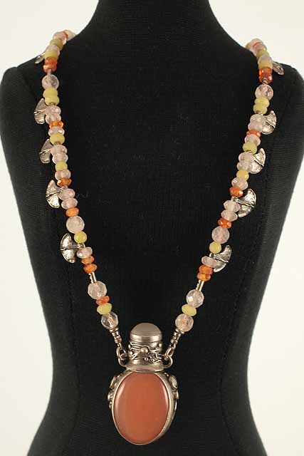 Hand made, sterling silver bottled pendent with Lemon Jade, Carnelian, Rose quartz, Spinal and Agate stones with sterling silver elements necklace.
