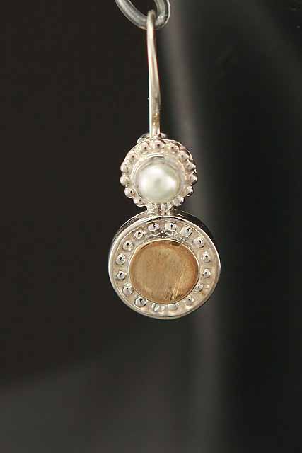 From this Israeli artists come glorious design of a classic earrings with a fashion twist. These two tone sterling silver and gold small earrings are great for all occasion wear, day or night. The white pearls are great for work and party as well.