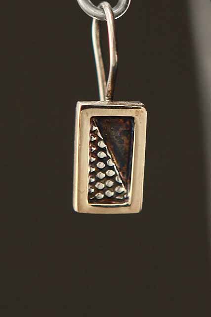 Get an instant, sophisticated look when you wear two tone earrings. Small and light earrings simply to fit any woman looks or events. Sterling silver hanging wires, earrings base with gold frame and oxidized front base that are raised with silver dots. A great playful of material, colors that are great for mix and match jewel. Covers all your occasion needs.
