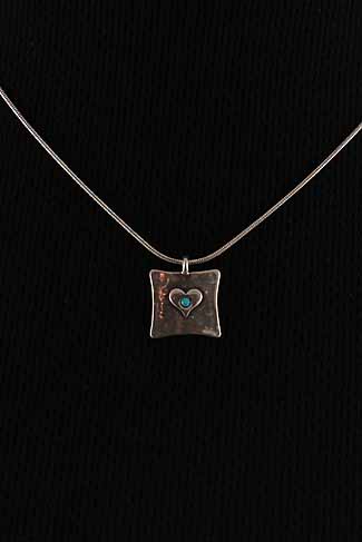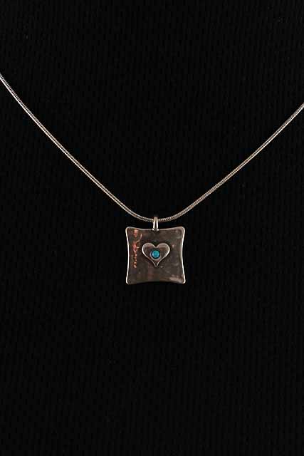 Hand made, sterling silver heart Blue Opal stone necklace.