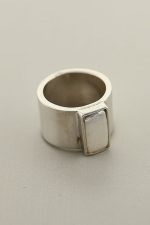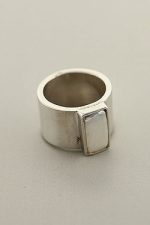 A pleasure for each and every day with Israeli handcrafted sterling silver wide band that sets in a rectangle white pearl. A ring-band style for everyone daily wear.
