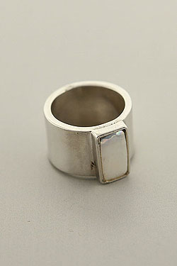Hand made, wide, sterling silver band with a rectangle white pearl.
