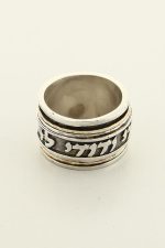 This ring is offered by a bride with a famous Hebrew phrase: “I’m my beloved’s and my beloved is mine”. This phrase is taken from the song of Solomon. This phrase became popular among many other nation as a commitment in marriage from one to another and men and women like to wear it. This jewelry is defiantly unisex ring-band.
