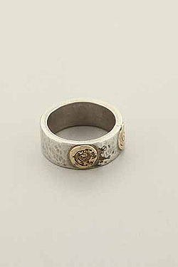 Watch out for this two tone ring-band with sterling and gold. This ring is unisex and can be worn also as a wedding ring-band. Hammered silver and spiral gold that is limited edition and one of its kind.