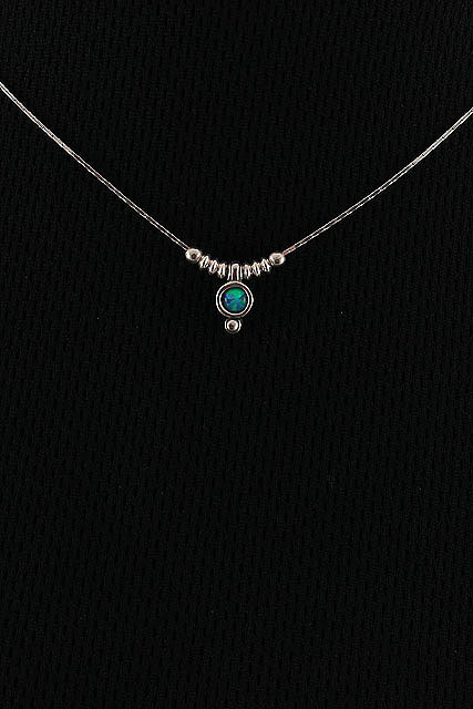 Hand made, sterling silver necklace with Blue Opal stone and sterling silver beads for decor. Great for kids as well.