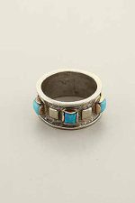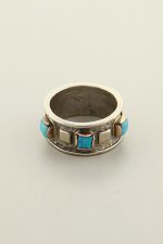 Hand made, two tone, Blue Opals band, oxidized and non brush with shiny trim. From Our contemporary collection.
