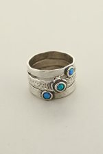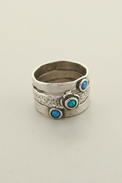Hand made, sterling silver with three rings attached and three Blue Opals.