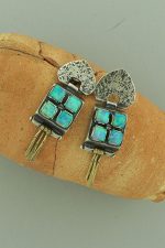 Two tone, post earrings with four Opal stones and three gold sticks dangling.