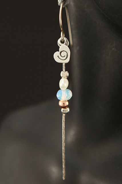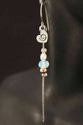 Hand made, sterling silver and goldfield hanging earrings with pearls and Moon stones.