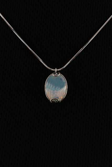 This necklace with its Opalite stone will shimmer light on any color skin or outfit.
