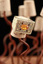 Hand made, 24K gold plated on top of sterling silver. A fashion band with a Citrine Swarovski Crystal.