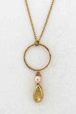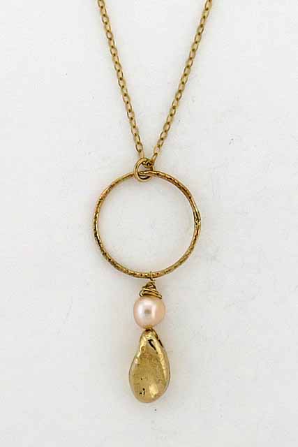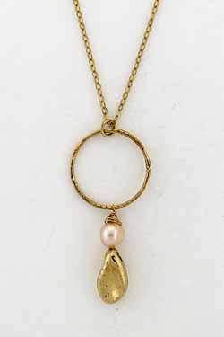 Gold-filled Necklace consist with a GO chain, GF circle, pearl and a GF tear drop to a finish.