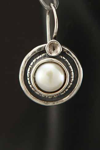 Hand made, sterling silver, hanging earrings with white Pearls. Good for all ages in all occasions.