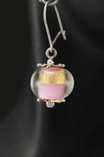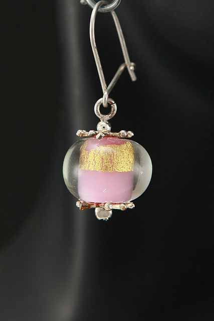 Hand blown, pink and gold glass earrings with sterling silver hanging wires.