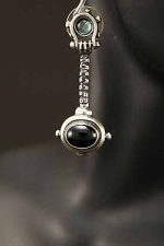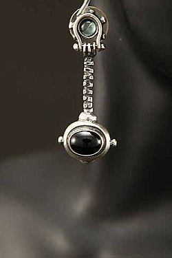 Hand made, sterling silver, post earrings with Blue Topaz and Onyx stones from our contemporary collection.