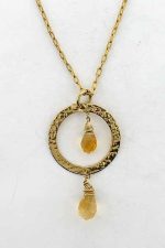 Two citrine stones hanging of a GF circle pendent on a GF chain.