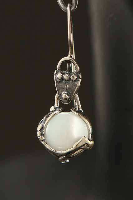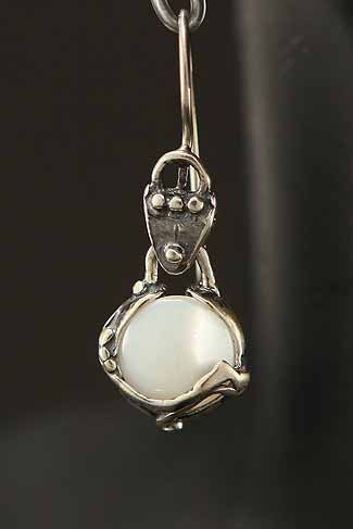 Hand made, sterling silver, hanging earrings with Mother of pearl from our contemporary collection.