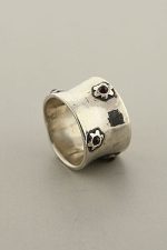 Hand made, wide, sterling silver band with spread Garnet flower stones.