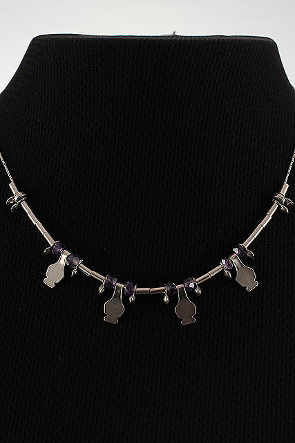 Hand made, unique, sterling silver necklace with Amethyst stones and sterling silver elements.