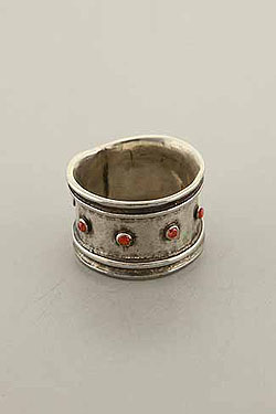 Hand made, sterling silver, wide band with Red Crystals in a double edge line to a finish.