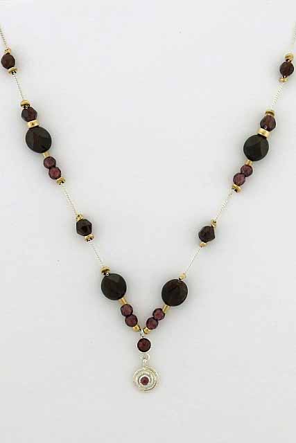 Sterling silver necklace with Garnet beaded stoned and gold-filled beads.