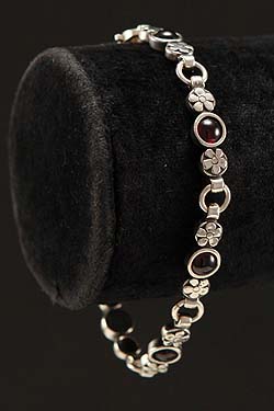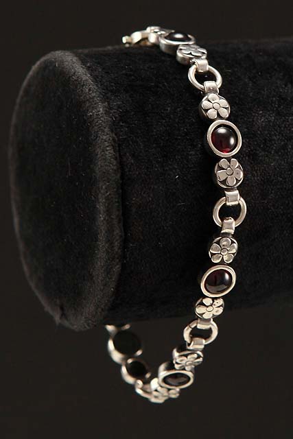 Hand made, sterling silver, double flowers bracelet with Garnets.