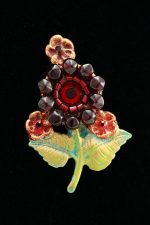 If you love pins then you will most likely to like this fashion pin. Hand painted with red crystal Swarovski. A vintage look for your shirts or coats or hats.