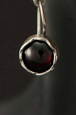 Hand made, sterling silver, hanging earrings with Garnet stones.