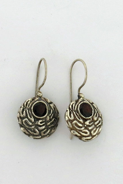 Oxidized and textured, hanging sterling silver Earrings with Garnet stones.