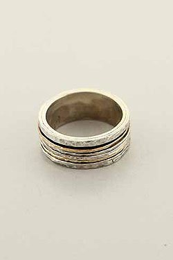 Hand made, two tone multi spinners rings in shiny, hammered and oxidized wide band.